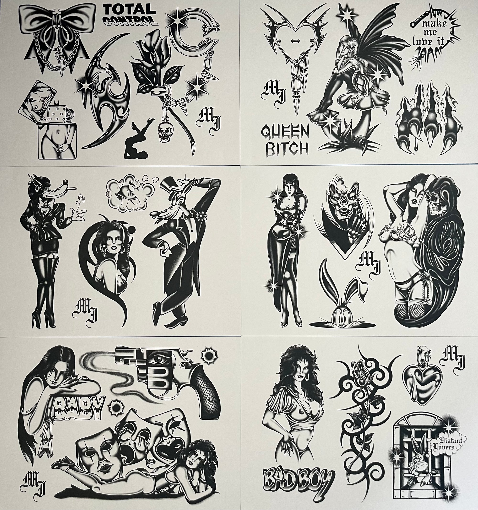 A 6 sheet collection of designs inspired by Phil Sims, Teen Angels, Cherry Creek, Bizarre Magazine, and more. A4 sizing (8.27”x11.69”).